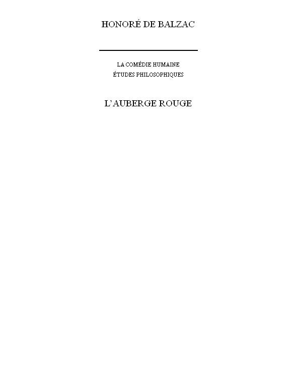 « L’auberge rouge » est une nouvelle d’Honoré de Balzac publiée en 1831 dans la « Revue de Paris ». On considère souvent que « L’auberge rouge » est la première nouvelle policière publiée par l’auteur, mais aussi en France et dans le monde. Avec La peau de chagrin, cette nouvelle fera de 1831 l’année de la révélation dans la carrière de Balzac. L’histoire se passe en 1799: le banquier allemand Hermann est de passage à Paris. Au cours d’un dîner, il raconte une histoire qu’il aurait entendue à l’époque des guerres napoléoniennes, tandis qu’il était prisonnier. Deux chirurgiens, Magnan et Taillefer, passent la nuit dans une auberge et y rencontrent un riche industriel avec dans ses bagages de nombreux diamants. Le lendemain, on retrouve l’industriel assassiné à l’aide d’un instrument chirurgical. Magnan est arrêté, condamné et fusillé. Le problème, c’est qu’il est innocent.